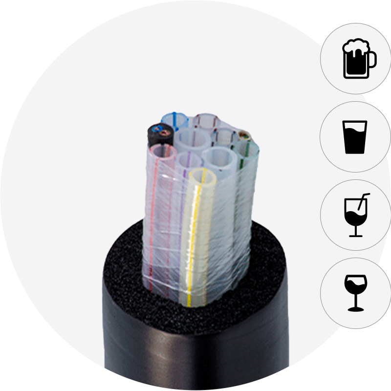 Ovaj piton sustav je višecijevna postavka s vanjskom toplinskom izolacijom, dizajnirana za točenje pića poput piva, bezalkoholnih pića i sirupa na niskim temperaturama. Koristi recirkulaciju hladne vode i toplinsku izolaciju za održavanje hladnoće proizvoda.